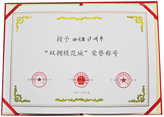 泸州于1994年、1997年、2000年、2003年、2007年、2012年连续六届荣获全国双拥模范城荣誉称号。此次,泸州市再次荣获此殊荣,连续七次获得“全国双拥模范城”荣誉称号,成为我省除成都以外唯一获此殊荣的地级市。