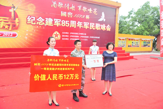 国窖情浓,礼敬于军,泸州老窖每年一度的拥军慰问活动已经成为公司全员参与的品牌活动,具有活动面广,影响力大,社会效益高的特点。热烈组织开展形式多样的“八一”、“春节”拥军联谊系列活动。每年“八一”建军节和“春节”,公司组织开展形式多样、内容丰富的慰问联谊活动,组织退伍转业军人座谈3000余人次,使全体复转军人深受鼓舞和倍感温暖。泸州老窖始终怀着感恩的心,跋山涉水慰问祖国各地及驻泸部队官兵。2011年以来,在建党90周年和“八一”建军节到来之际,公司核心管理团队成立了10余个拥军慰问团,在泸州市委市政府的指导下,分20余条路线,在全国开展了主题为“军民鱼水情深,国窖礼敬英雄”的大型拥军慰问活动。活动走访了全国及驻泸部队40个,累计慰问全国军队100余次,赠送价值5000万元左右的公司产品。泸州老窖依托“双国宝”文化优势,吸引了全国各地部队官兵到公司参观指导。泸州老窖拥军慰问的热情感动了部队官兵,同时浓厚的酒文化也吸引他们到公司参观访问,国窖1573国宝窖池群累计接待一万多名来自全国各地军区部队的官兵游客,通过酒文化这一共同话题,升华了军政军民关系。同时,积极与全国各地及驻泸部队开展文体联谊活动,形成军企活动常态化,承办大型舞蹈诗剧《大北川》泸州老窖感恩之夜活动;结合新春团拜会与14个驻泸部队开展共庆活动;依托泸州老窖动力篮球馆开展“国窖1573杯”泸州市庆“国庆”军民篮球联谊赛,开展“泸州老窖”杯庆祝中国人民解放军建军89周年等等各种文体联谊活动,形成军企活动的常态化、丰富化、多样化,促进了军企协作与发展,增进了军民感情,促进了军民融合式发展,在爱国拥军中做出了卓越的成绩。