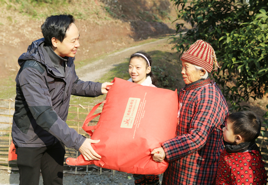 数九寒冬,气温骤降,华蓥市委市政府心系山区贫困群众,及时将御寒物资送到贫困户手中,确保他们温暖过冬。图为华蓥市机关干部职工将御寒物资送到观音溪镇高坪村贫困户手中。(黄友国 摄影报道)