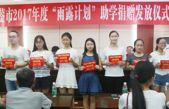 8月22日,四川省华蓥市举行2017年度“雨露计划”助学捐赠发放仪式,现场为26名贫困大学生发放助学金共计78000元。