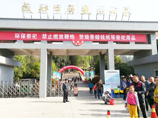 根据民政部、省民政厅、市民政局统一部署,在各相关部门的支持配合下,在今年的清明节群众祭扫活动中,成都市殡仪馆认真部署工作方案,齐抓共管确保清明祭扫活动顺利开展,得到了广大祭扫群众的一致肯定。记者在成都市殡仪馆磨盘山公墓看到,鲜花绽放成了主色调,文明祭扫成了主旋律,生态祭祀蔚然成风。