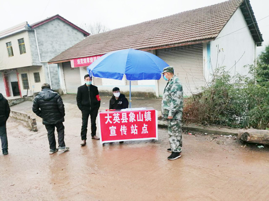 隆盛镇青坪村副书记彭名华,在疫情防控中,充分发挥了退役军人及党员干部的优良传统,积极走向疫情防控第一线,恪尽职守、迎难而上,在动员群众自觉在家隔离的形势下,率先在村上施行政府代购生活必需品行动,全村百姓纷纷叫好。据了解,在大英县隆盛镇,主动请缨参战的志愿者一共有20人,其中退役军人就占了12人。他们广泛活跃在抗疫的一线,参加防控知识的宣传、卡口执勤、人员摸排等工作中。